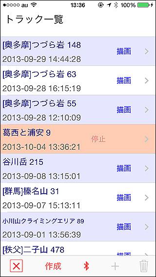 ![]() 記録中のトラックは行がオレンジになります。記録中もトラック詳細画面は開けます。 |