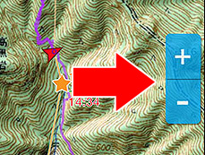 広域:現在表示している地図をスッポリ包む地図があった場合に表示されます。複数の山域をカバーするような大きな地図を粗い縮尺で作っておくと地図の切替が簡単になります。