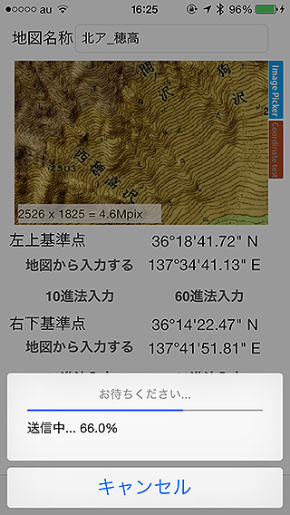 DIY GPSには最初、地図が全く入っていません。GPSとして使うには、まず地図を登録する必要があります。地図を登録する手段はいくつかあります。 1.KMZファイルをインポートする(推奨) なお、Windowsでカシミール3Dを使う場合はコチラをご覧ください>「カシミール3D、地図、マップカッターのインストール方法」 MacOSXユーザーでもMikuInstallerを使う事で、カシミール3Dを動かす事が出来ます。手順などはコチラ「MacOSXでカシミール3Dを使う最も簡単な方法」。 ※よくある勘違い・・・iPhoneのDropboxでカシミール3Dの地図ファイル(KMZファイル)を開くと『ファイル読み込みのエラー』とか『ファイルを表示出来ません』などと表示されます。これはDropboxが『表示』に対応していないだけでDIY GPSに送る機能については問題なく動きます。気にしないで画面左下のエクスポートボタンを押してDIY GPSに送って下さい。 2.KMZファイルをBluetooth転送で仲間にもらう 3.地図の画像を用意して、画像と基準座標を設定する 地図さえ登録すれば準備完了。現在地がその地図内であればどこにいるかを教えてくれます。ネットの地図をキャッシュするタイプのアプリと違い、確実に地図のデータが存在する安心感があります。 |