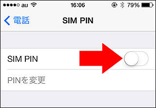 1.iPhoneの『設定->電話->SIM PIN->SIM PIN』のスイッチがオフの場合はタップしてください。
