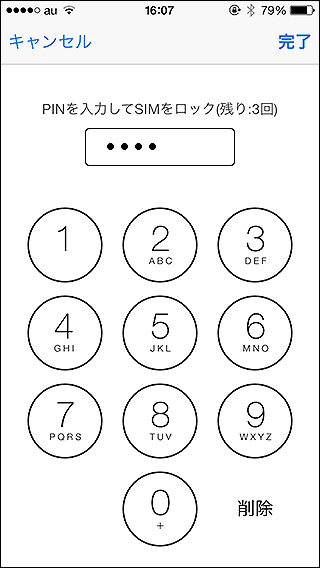 2.PINの入力を要求されます。初期値はキャリアによって違います。『au:1234、docomo:0000、ソフトバンク:9999』の様です。なお、au以外は試してないので実際合っているのかは判りません(情報ソースはコチラ)。