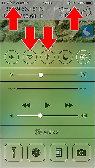 3.PINの入力は3回失敗するとSIMが使えなくなります。2回失敗したら諦めて各キャリアに問い合わせてください。成功すると上記SIM PINの右にあるスイッチがオン(緑色)になります。ただし、SIMロックはiPhoneの起動時に発動するためこのままでは何も起きません。 4.あとは、例えば登山口に着いた時などSIMをロックしたいときにiPhoneの電源を完全に落として再起動してください(電源ボタン長押しで電源を落とせます。もう一度押せば起動します)。すると画面に『SIMがロックされています』と表示されます。OKを押せばそのままロック状態が続きます。この状態でも無線LANは使えます。使えないのは携帯キャリアとの通信です。更に、コントロールパネルでWi-FiやBluetoothも切ってしまえば実質的な『GPSを使える機内モード状態』を作り出せます。